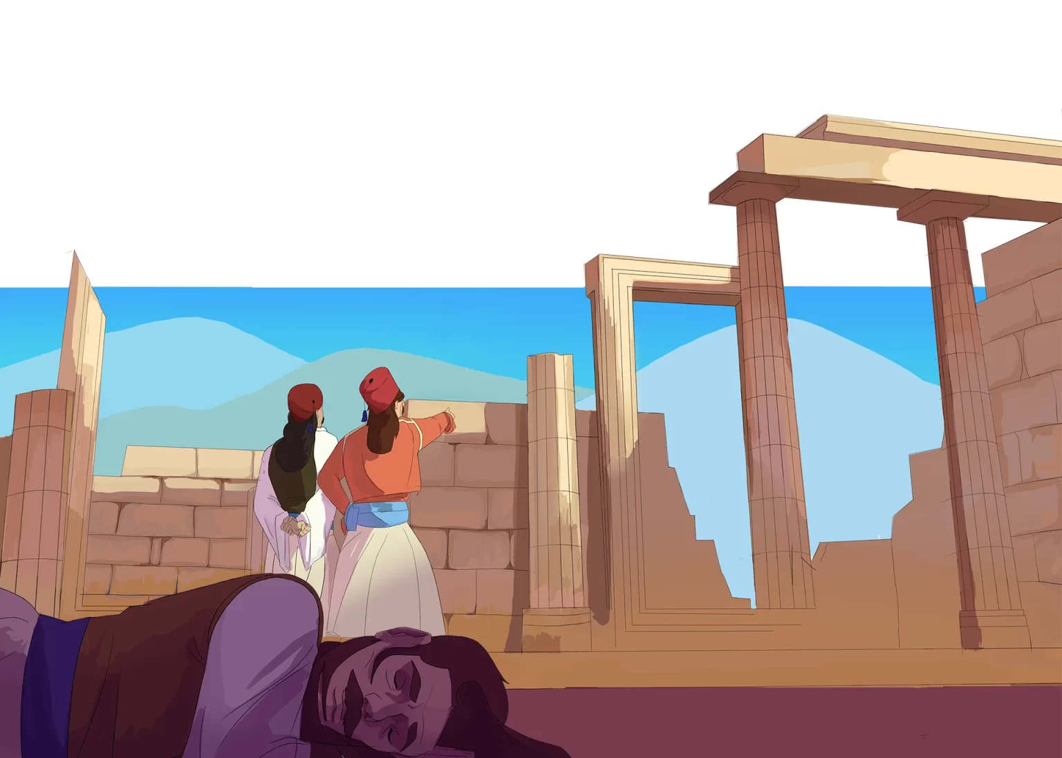 Ο Σαντόρε έμαθε πολλά πράγματα για την Ελλάδα. Έμαθε για τους ανθρώπους που ζούσαν στην Ελλάδα. Αυτοί ονομάζονταν Έλληνες. Έμαθε για τα αγάλματα και τους μεγάλους ναούς που υπάρχουν στην Ελλάδα. Του άρεσαν όλα αυτά. Άρχισε να αγαπά την Ελλάδα και τους Έλληνες.