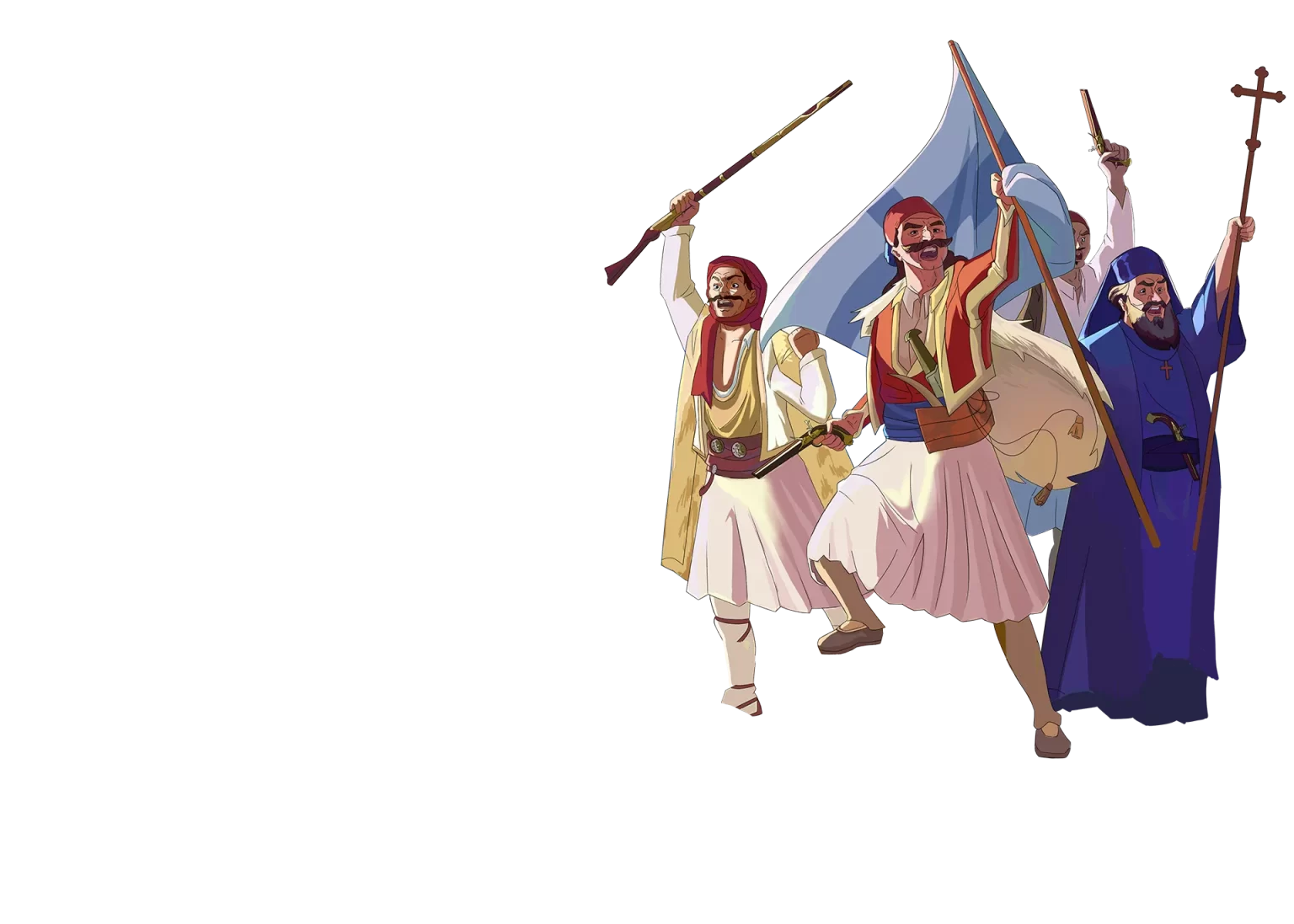Τότε, οι Έλληνες ήταν φτωχοί και ζούσαν με φόβο.Στην Ελλάδα, ζούσαν κάποιοι άνθρωποι που δεν ήταν Έλληνες. Αυτοί ονομάζονταν Οθωμανοί. Τότε, οι Οθωμανοί ήταν αρχηγοί στην Ελλάδα και είχαν όλα τα χρήματα.Οι Οθωμανοί αποφάσιζαν για τα πάντα. Δηλαδή, έλεγαν στους Έλληνες τι ώρα θα φάνε και τι θα φάνε. Έλεγαν στους Έλληνες τι ώρα θα πάνε βόλτα και τι θα κάνουν. Οι Έλληνες δεν μπορούσαν να αποφασίζουν μόνοι τους. Οι Έλληνες ήταν λυπημένοι.